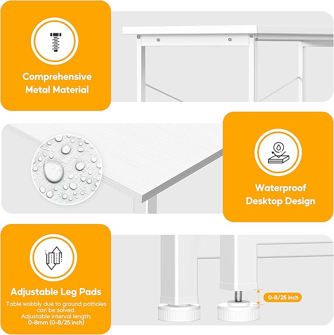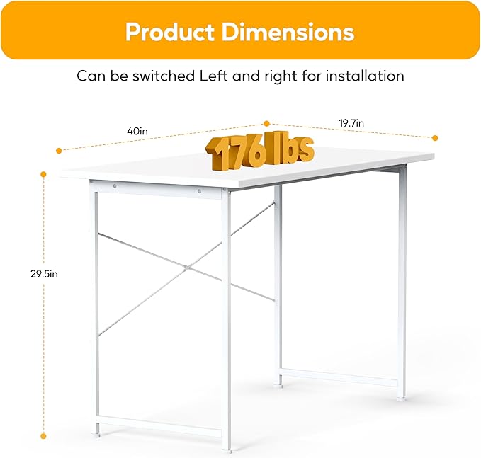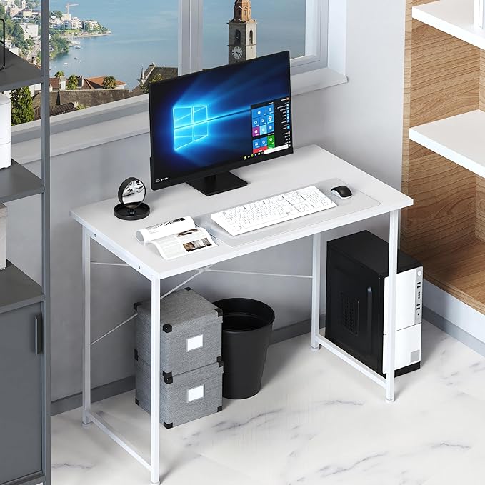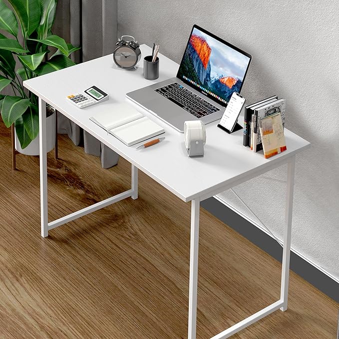 HealSmart Home Office Computer Desk, Modern Style Design with Headphone Hooks for Working, Writing and Gaming, 32 Inch, 40 Inches, White