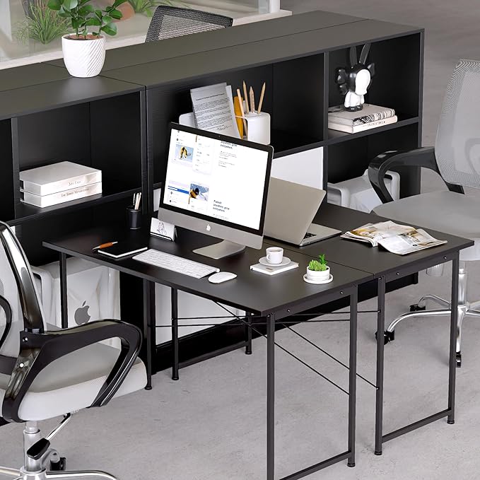 HealSmart Home Office Computer Desk, Modern Style Design with Headphone Hooks for Working, Writing and Gaming, 32 Inch, 47 Inches, Black