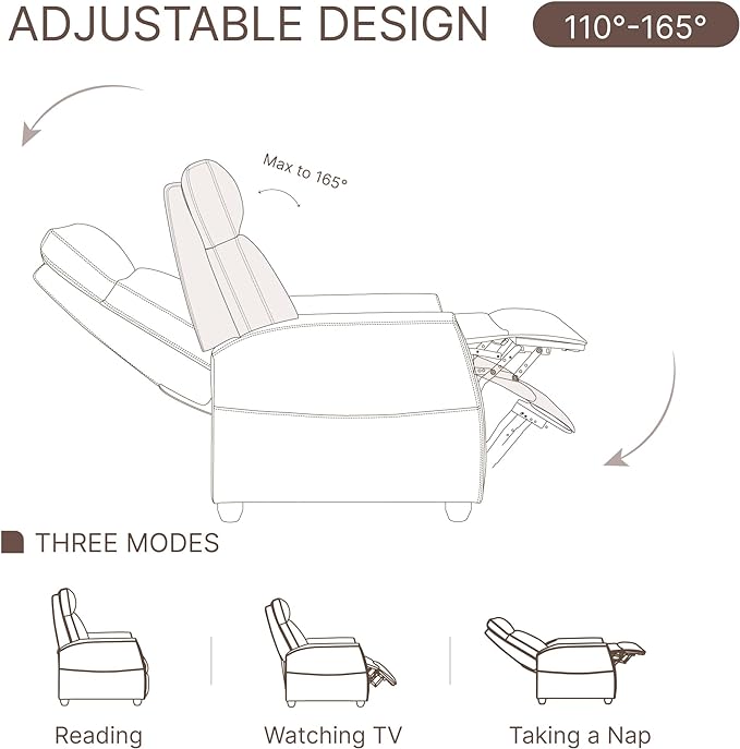 Recliner Chair for Adults PU Leather Push Back Armchair with 4 Colors Ambient Lighting Home Theater Seating with Massage & Heat Vibration Single Sofa for Living Room, Black