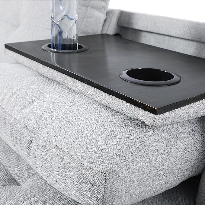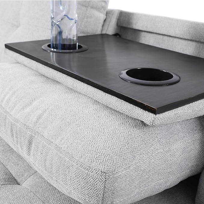 3-Piece L Shape Sectional Sofa with Right Chaise, Storage Ottoman and 2 Cupholders, Modern Flannel Couch w/Button Tufted Backrest, for Living Room, Office, Apartment, Grey White, 97inch