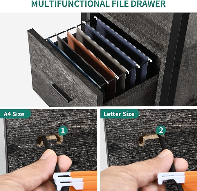 About This Standing L Desk with File Drawer: The file drawer with adjustable hanging bars for A4 & letter-size documents...