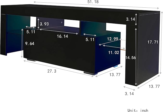 TV Stand Base, Entertainment Center Cabinet with LED Light Media Console for Living Room, Bedroom, 51 Inch, Black