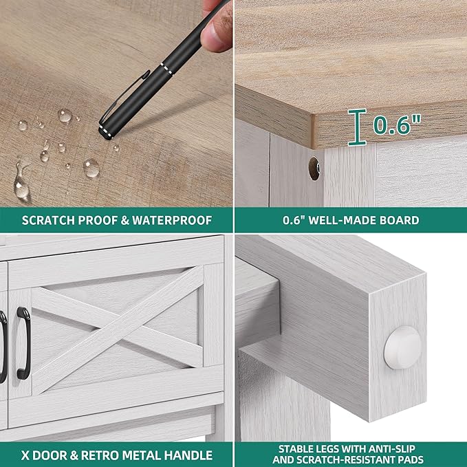 YITAHOME TV Stand for 75 Inch TV w/Power Outlets, Farmhouse Entertainment Center with Storage Cabinets, Rustic TV Cabinet Media Console Table for Living Room, 65'' Large TV Stand, Grey White/Grey Wash