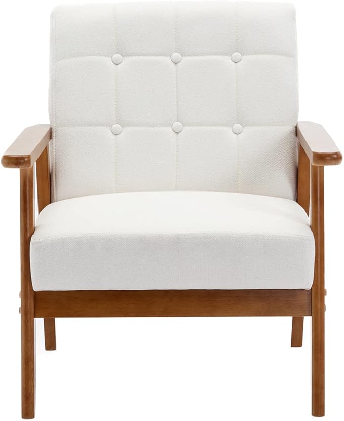 Mid-Century Accent, Modern Single Armchair, Upholstered Leisure Lounge Chair wth Solid Wood Armrest and Feet for Living Room, Bedroom, Office, Beige