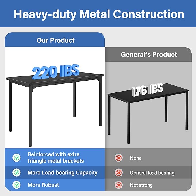 HealSmart Home Office Computer Desk Ideal for Work Study, Writing, or Gaming Size, Thickened 47 Inches, Black
