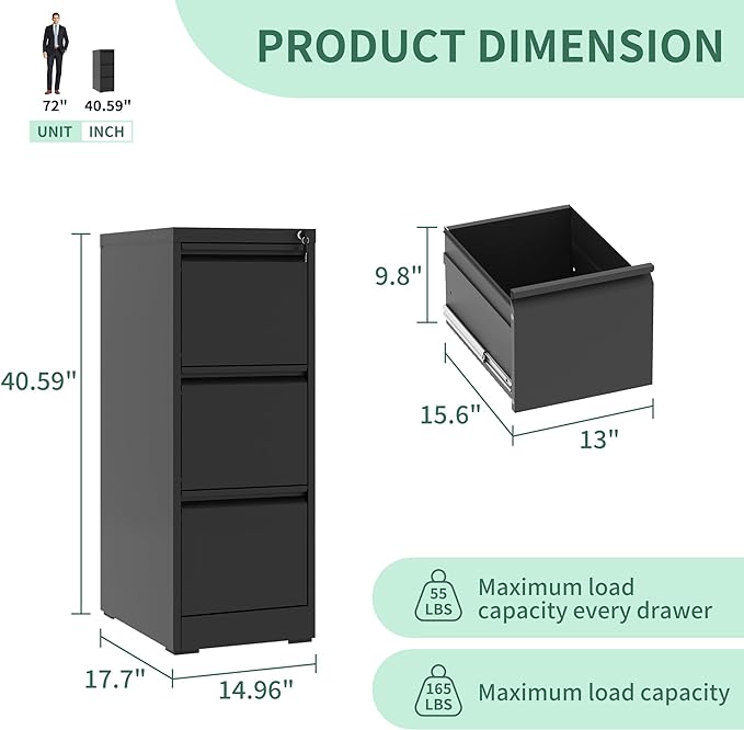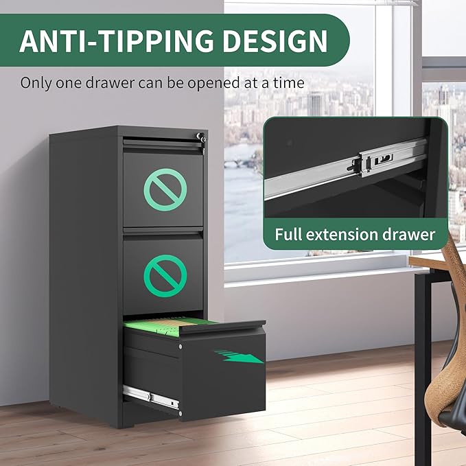 About This ✦【Spacious Storage & Organization】This metal 3 drawer file cabinet with lock offers spacious storage with larger and deeper...