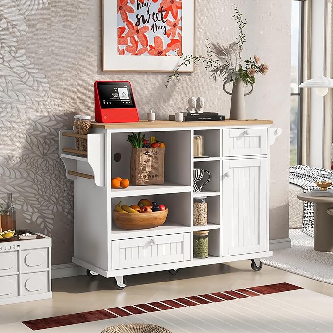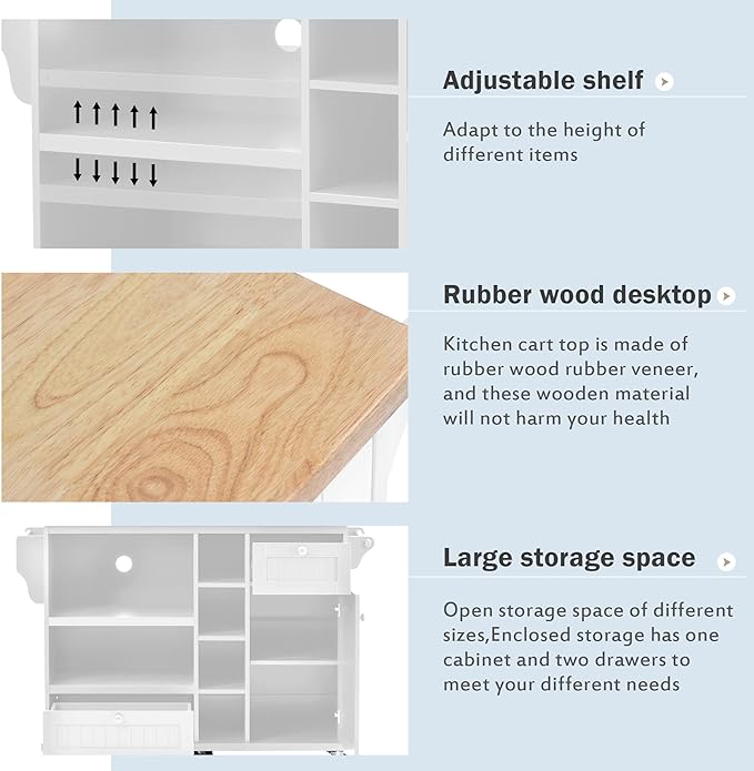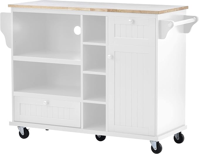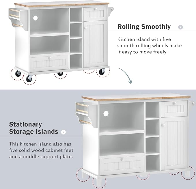 Kitchen Island with Storage on Wheels,Kitchen Island Cart w/Wine Storage Rack and 2 Drawers, Solid Wood Desktop Buffet Server Sideboard for Dining Room, Coffee Bar