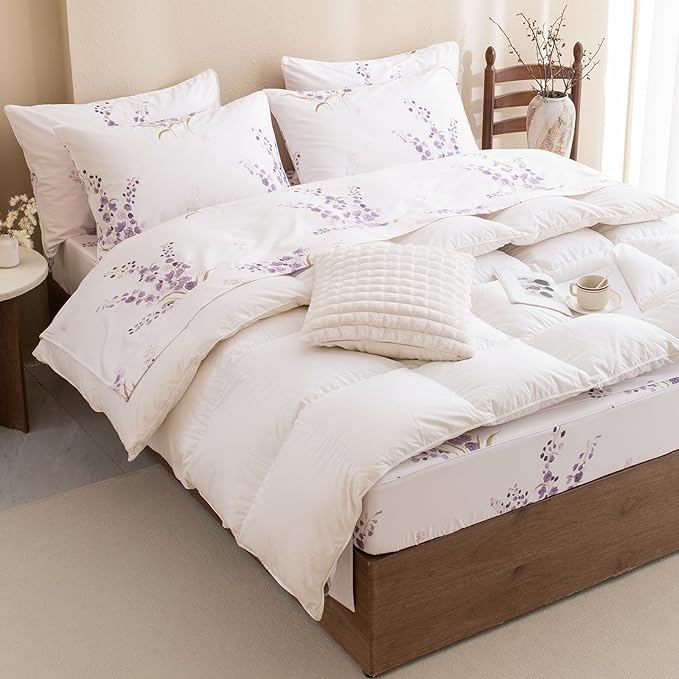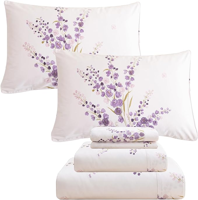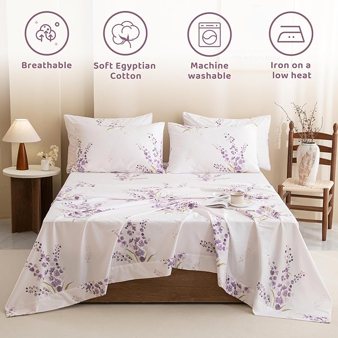 About This 4PCSs Egyptian Cotton Percale Sheets King Size - Include 1 pc lavender floral flower pattern flat sheet -...