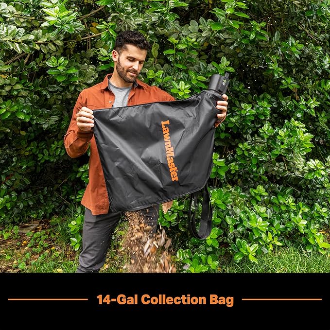 LawnMaster BV1210 Electric Blower Vacuum Mulcher 12 Amp 2-Speed Adjustment with Metal Impeller 240 MPH 380 CFM 16:1 Mulch Ratio