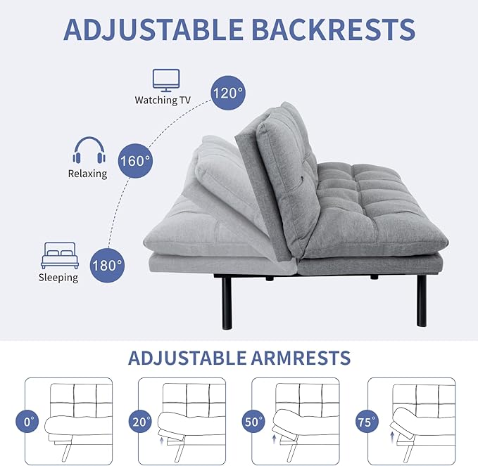 About This 【ADJUSTABLE BACKRESTS ARMRESTS】The MUUEGM backrest of the futon sofa bed is adjustable in 120°, 160° and 180°, while...