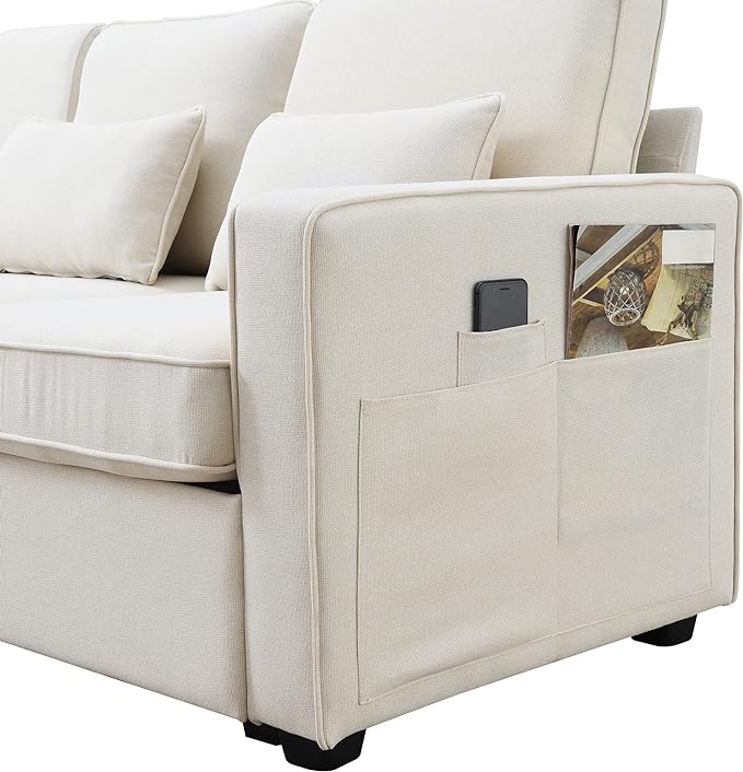 About This Innovative Multifunctional Design: The 4-seater I shaped sofa features three multi-layer storage pockets of varying sizes on each...