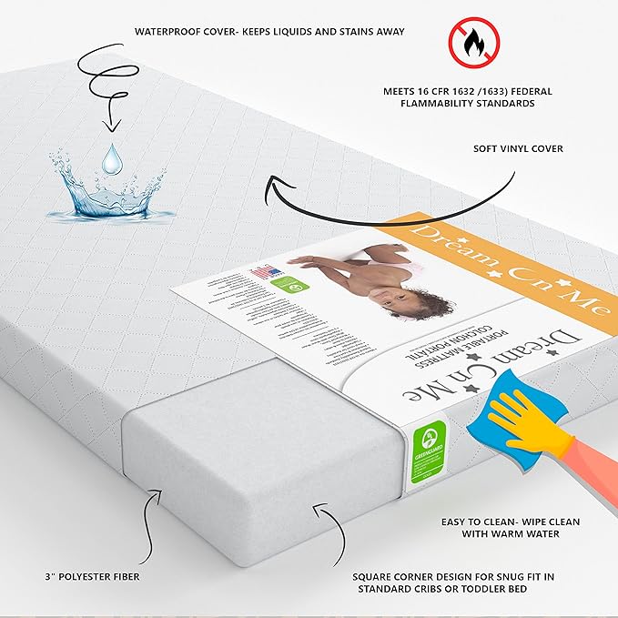 3-in-1 Portable Folding Crib Bundle with Sunset Extra Firm Fiber Mini Crib Mattress, 41x26x40 Inch and 38x24x3 Inch