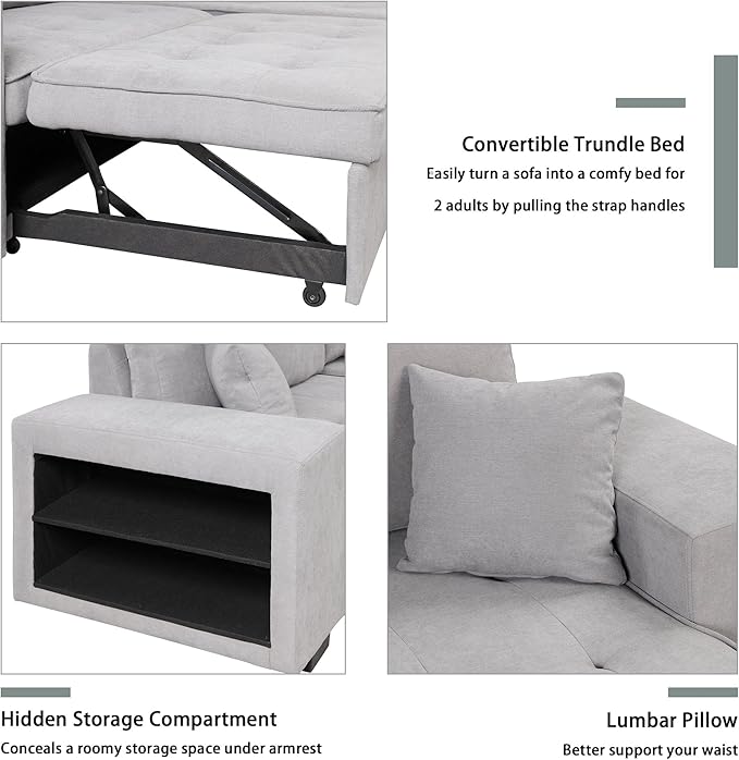 About This Linen Practical Sleeper Sofa Bed - L-shape sofa can be easily converted into a bed. The equipped portable...