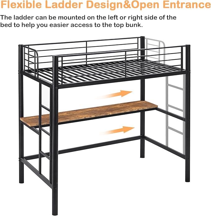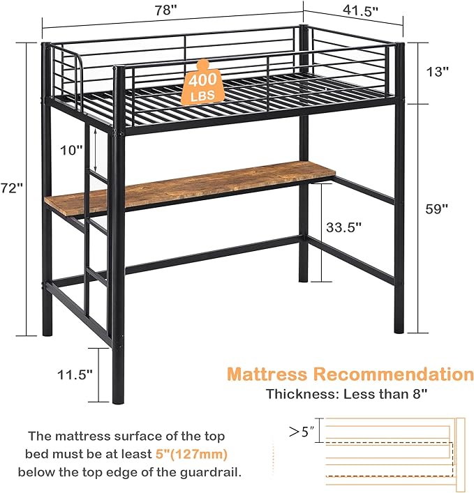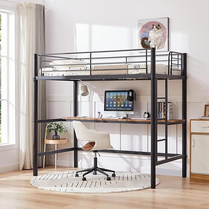 About This Metal 【Loft Bed with Desk】The twin size loft bed can be configured as two separate spaces. The loft...