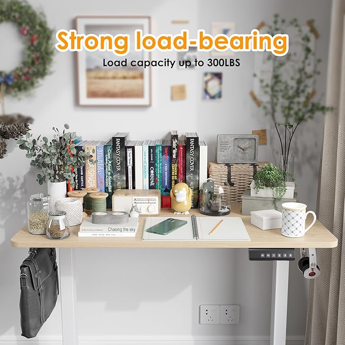 STARY Electric Memory Preset 40 x 24 Inches Adjustable Height Computer Workstation Sit Stand Home Office Desk with Splice Board, 4024, Castin Oak Desktop/White Frame