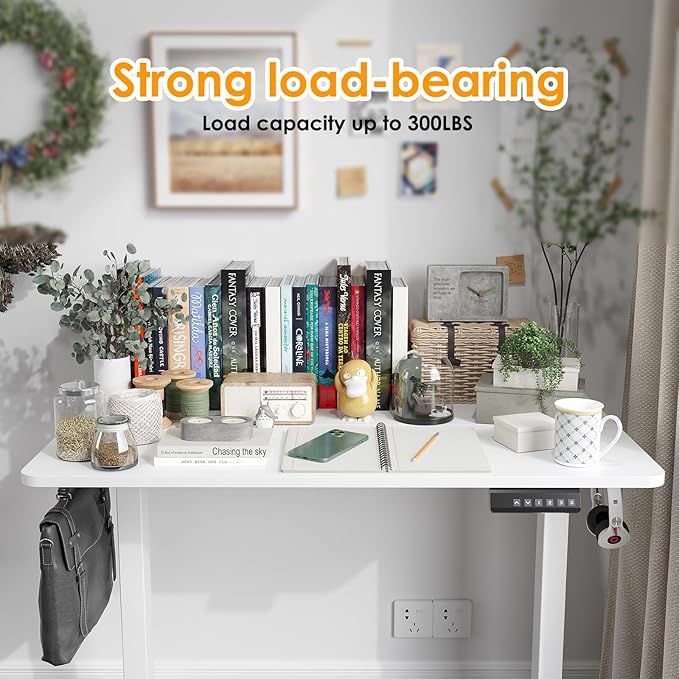 STARY Electric Memory Preset 40 x 24 Inches Adjustable Height Computer Workstation Sit Stand Home Office Desk with Splice Board, 4024, White Desktop/White Frame