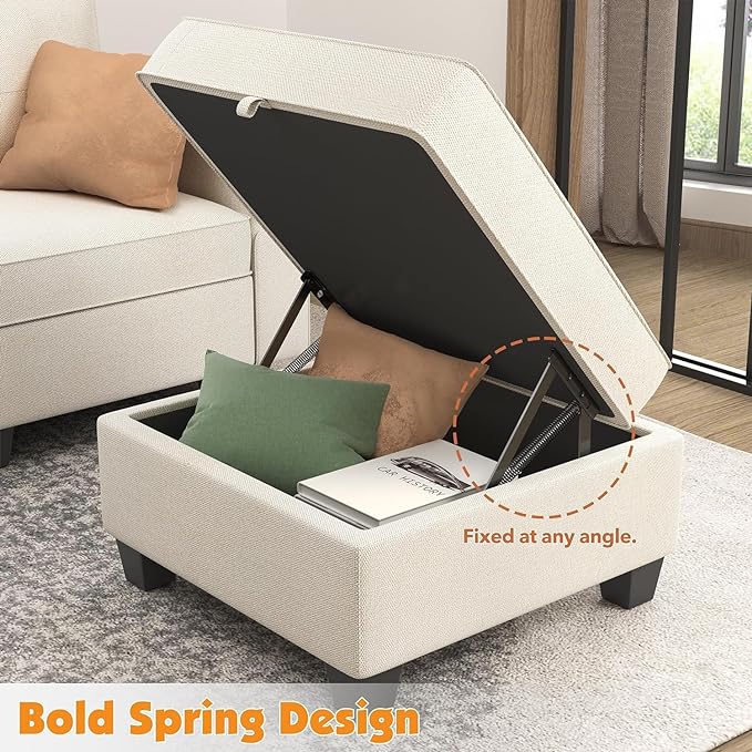 Modular Sectional Sofa, Convertible Sectional Couches for Living Room L Shaped Sectional Sofa Couch with Storage Ottoman, High Supportive 6 Seats Reversible Sectionals 113'' with Chaise, Beige