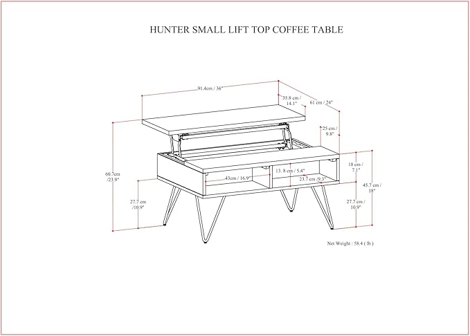 SIMPLIHOME Hunter Small Lift Top Coffee Table, 36 inch, Oak