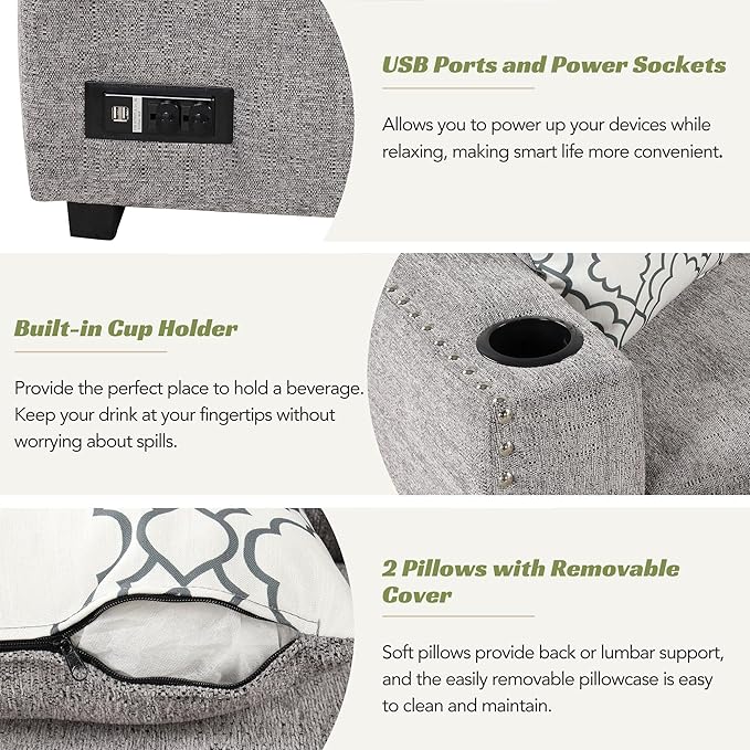 83.8“ L-Shape Sectional Sleeper Sofa with Pull out Bed and Storage Chaise, Chenille Upholstered Couch w/Cup Holder&USB Charge, for Living Room Apartment, 83.8 Inch, Light Gray