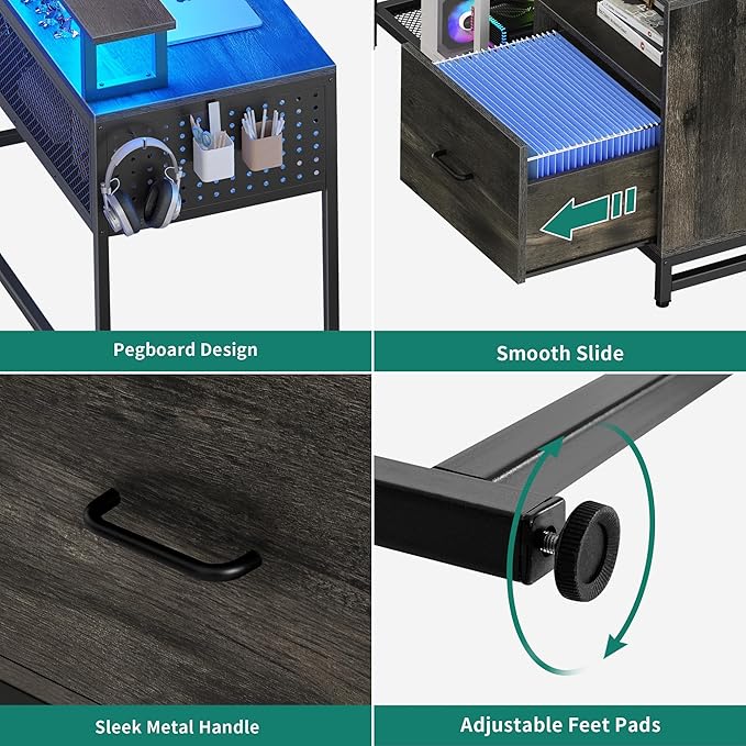 YITAHOME U Shaped Desk, L Shaped Desk with Drawers, Reversible Computer Desk with Power Outlets & LED Lights, Corner Desk Office Desk with Monitor Stand & Storage Shelves, Grey