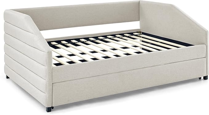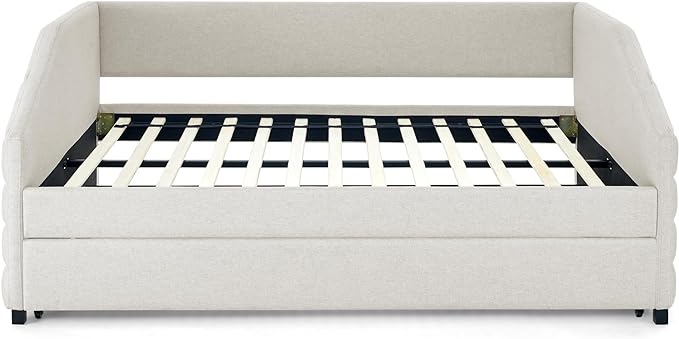 • : Style Linen Upholstered Daybed with Trundle Frame Material Wood
