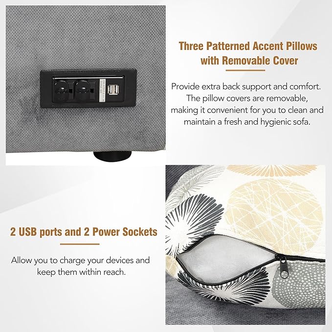 83“ L-Shape Sectional Sleeper Sofa with Pull out Bed, Linen Upholstered Convertible Couch w/ 3 Pillows, 2 Power Sockets &2 USB ports, for Living Room Apartment, 83 Inch, Dark Gray