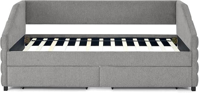 Twin Size Linen Daybed with Dual Storage Drawers, Upholstered Wooden Frame w/Elegant Tufting, No Box Spring Necessary, Space-Saving Solution for Compact Areas