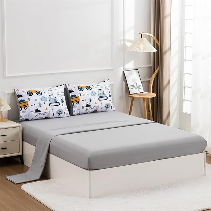 NTBED 5 Pieces Construction Truck Twin Comforter Set for Boys Kids Forest Vehicles Excavator Lightweight Microfiber Bedding Sets