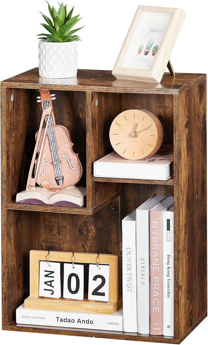 VECELO Small Bookshelf, 3 Cube Shelf, Fits Tallest Hardcovers, Horizontal Available, Short Bookcase for Small Spaces, Vintage Brown
