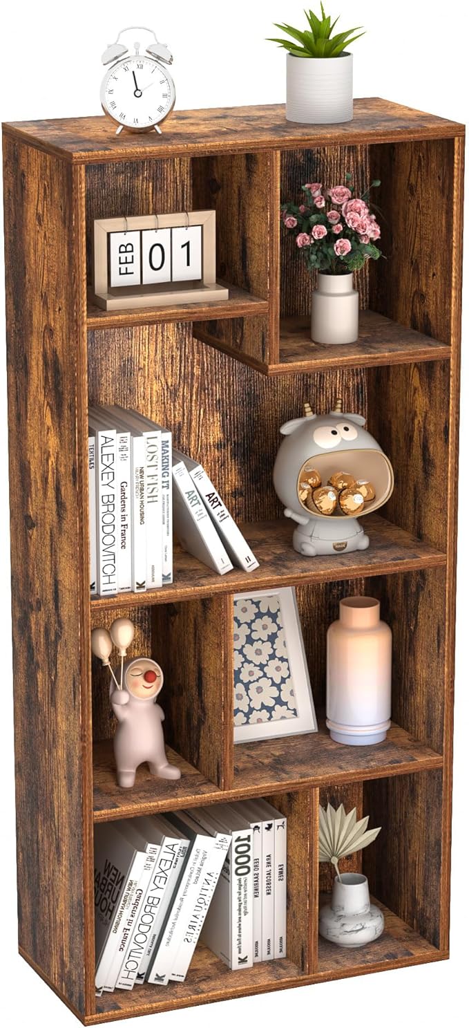 VECELO 42" Modern Bookshelf, 7 Cube Organizer Bookcase,Fits Tallest Hardcovers, Horizontal Available,Floor Standing Display,Easy Assembly, Vintage Brown