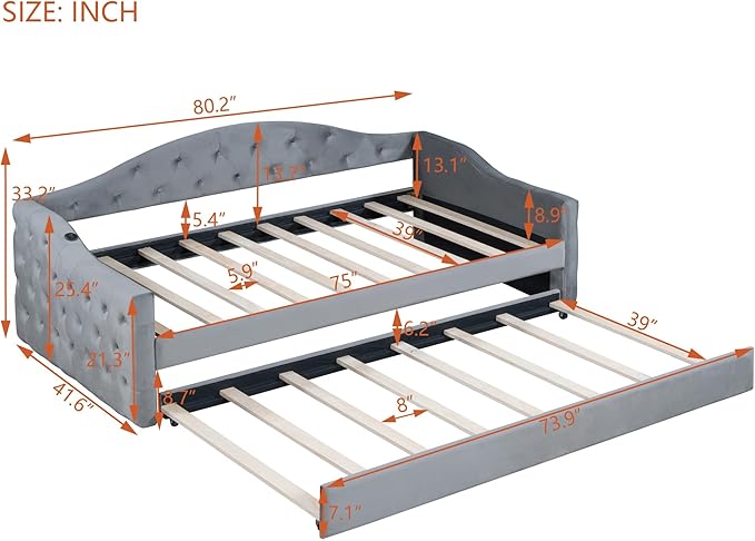 About This Velvet [Elegant design sofa bed] This twin daybed features an elegant and generous design with tufted detailing, upholstered...