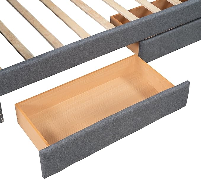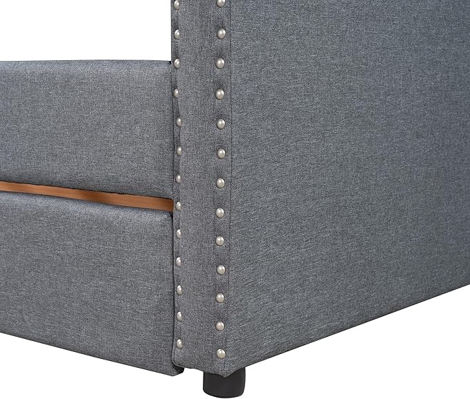 Twin Size Upholstered Daybed with Two Storage Drawers, Tufted Sofa Bed w/Nailhead Trim and Wood Slat Support, for Bedroom, Living Room, Guest Room, Gray