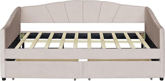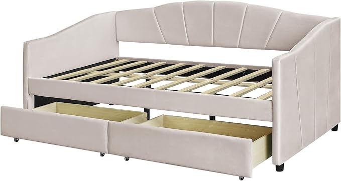Twin Size Upholstered Daybed with Two Drawers, Wood Slat Support Sofa Bed with Armrest, No Box Spring Needed, Easy to Assemble, for Studio, Bedroom, Living, Guest Room, Beige
