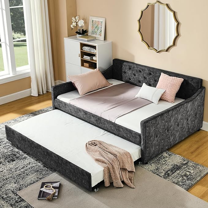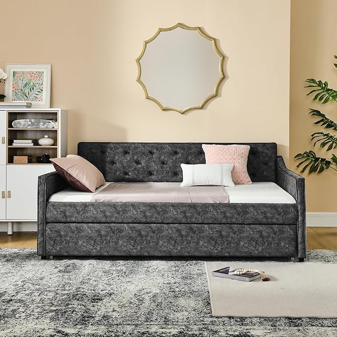 About This Polyester [Stunning Look] This mid-century - inspired full daybed features tufted back which creates an elegant look. The...