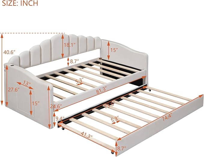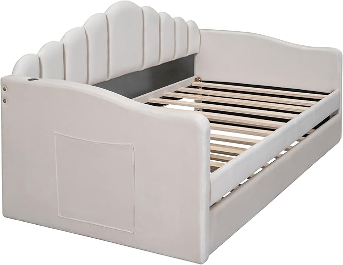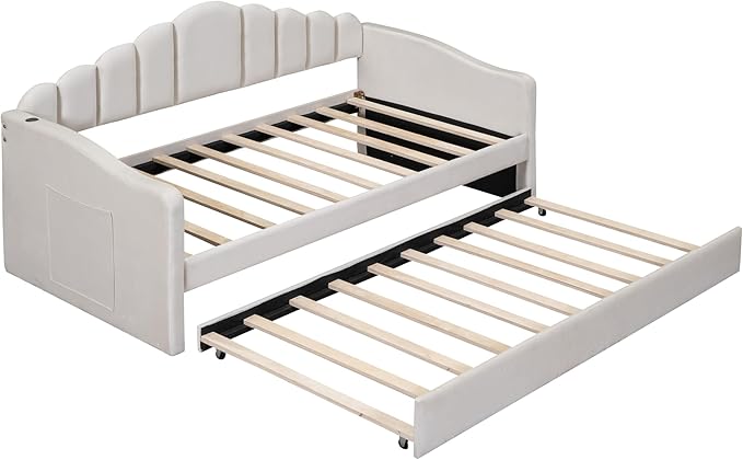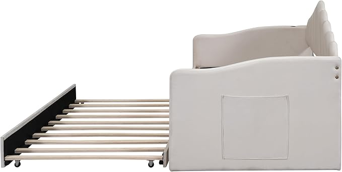 • [Upholstered Daybed with Trundle] - The daybed with handy pull-out trundle takes up minimal space for the spontaneous sleepover guest. There are 2 large pockets on both sides of the bed, which can store magazines, books, etc.Such a versatile piece, bringing functionality, versatility, and style to your home, perfect for those who have lots of visitors.