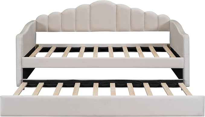 • [Elegant Velvet Upholstered Daybed] - This sofa bed is made of selected velvet fabrics, elegant gray or beige, with one backrest and two armrests, the backrest is designed with vertical stripes, elegant and generous, not only suitable for any home decoration, but also designed to last forever Not out of date. A soft fabric headboard provides comfort.