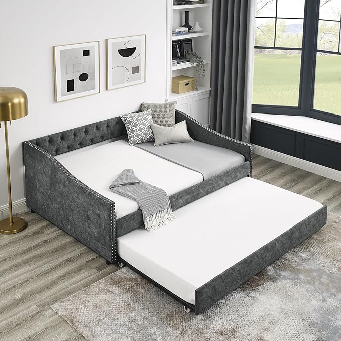 • : Style Upholstered Daybed with Twin Trundle