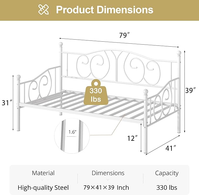 About This Metal [Heavy-duty Daybed] - This twin daybed frame structured with heavy-duty metal ensures durability and stability. Powder coated...