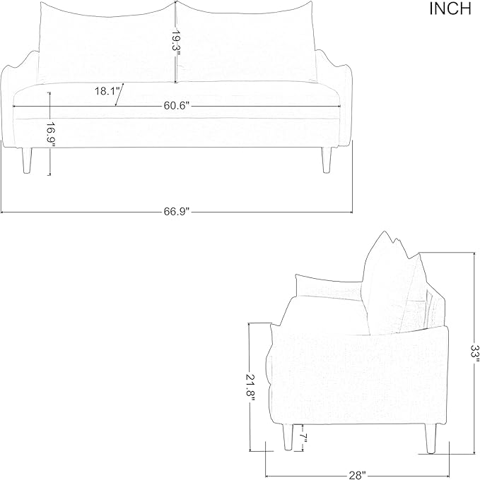 About This - 66.9” Couch/Loveseat, Modern design With neat lines and the unique curved arms and back cushion is extremely...