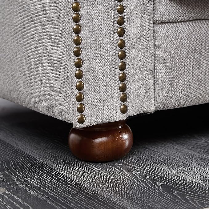 Clasic Chesterfield 3 Seaters Sofa Couch W/Luxury Roller Armrest Soild Wood Legs Linen Fabric Upholstered Button Tufted Sofa&Couch with Removable Cushions & Nailhead Decor, 88.5", Light Grey-007
