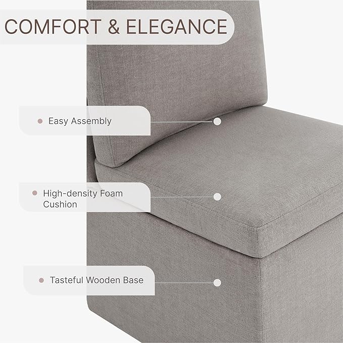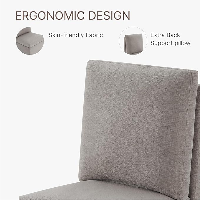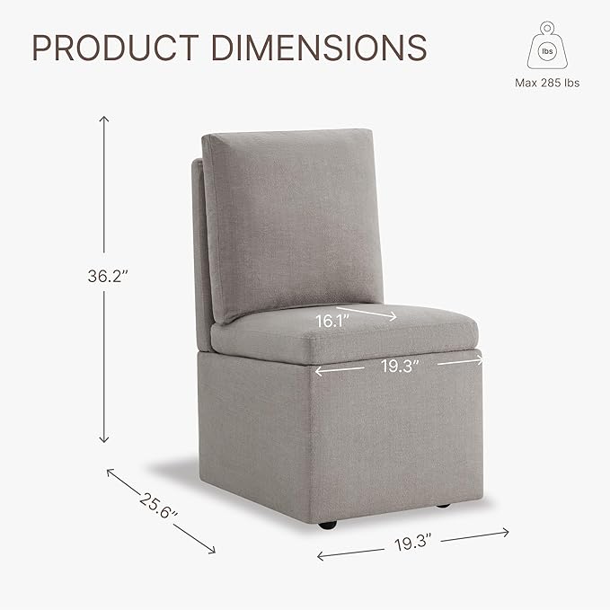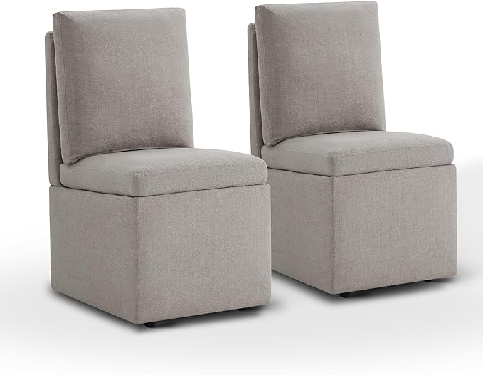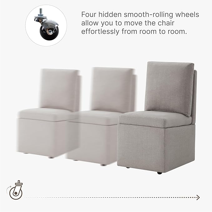Upholstered Dining Chair with Casters Armless Modern Rolling Design for Diningroom Bedroom Livingroom Reading Room, Set of 2, Beige Gray