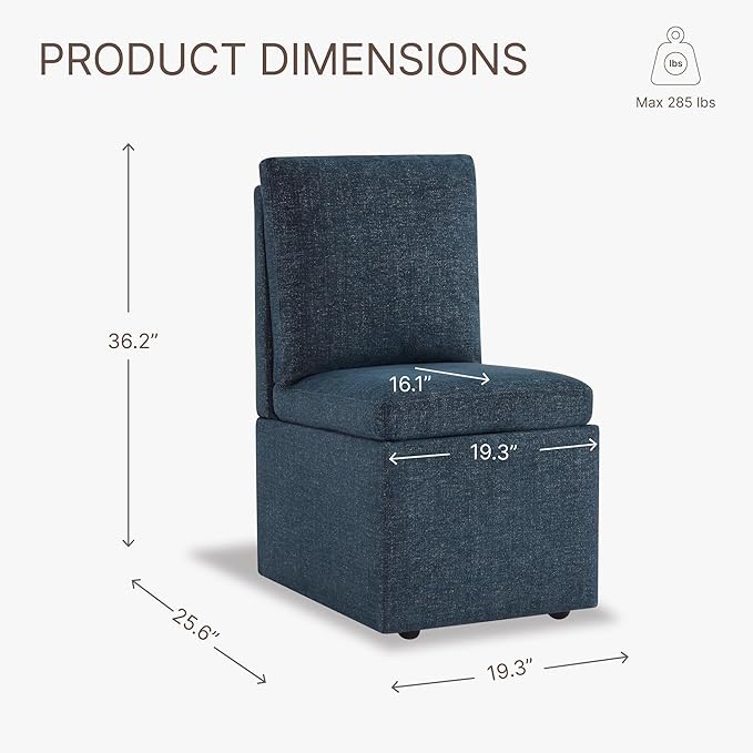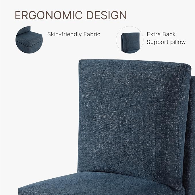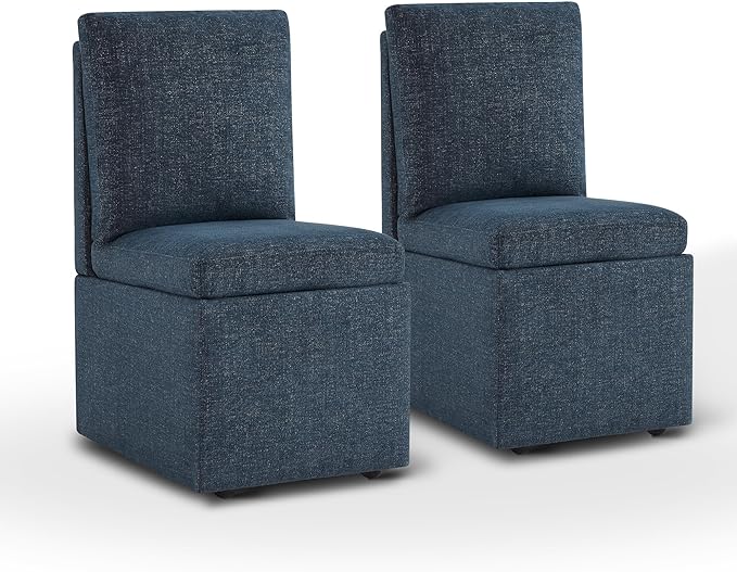 Upholstered Dining Chair with Casters Armless Modern Rolling Design for Diningroom Bedroom Livingroom Reading Room, Set of 2, Blue