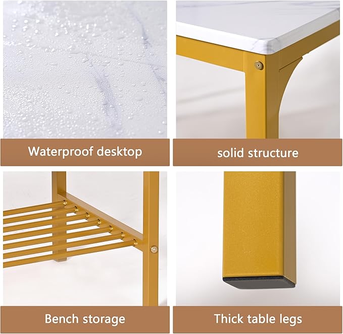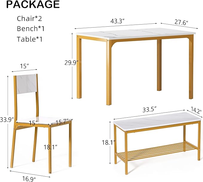SogesHome 4-Piece Dining Table Set for 4 - Space-Saving Kitchen Set with Bench and Chairs, Ideal for Restaurants and Coffee Shops, Golden