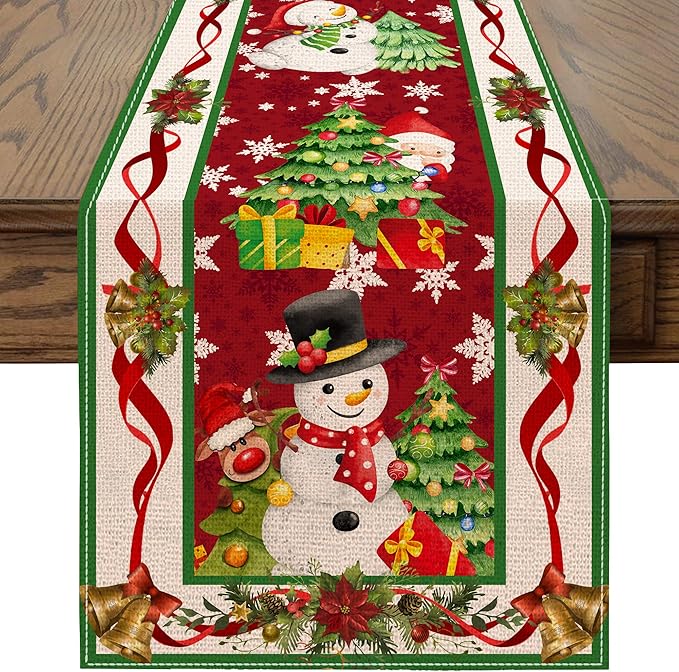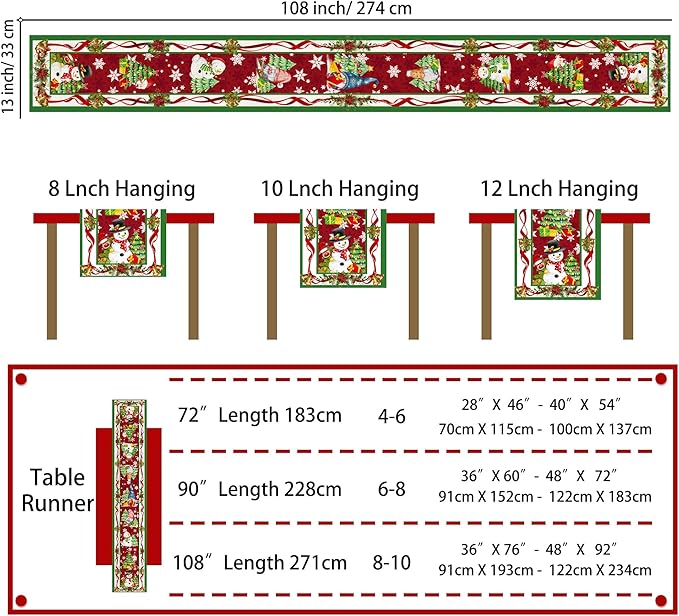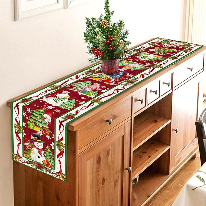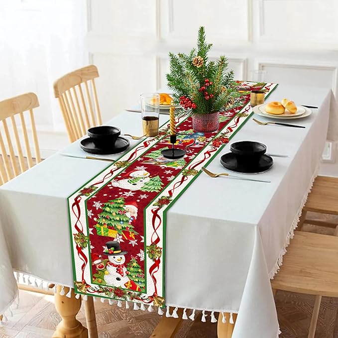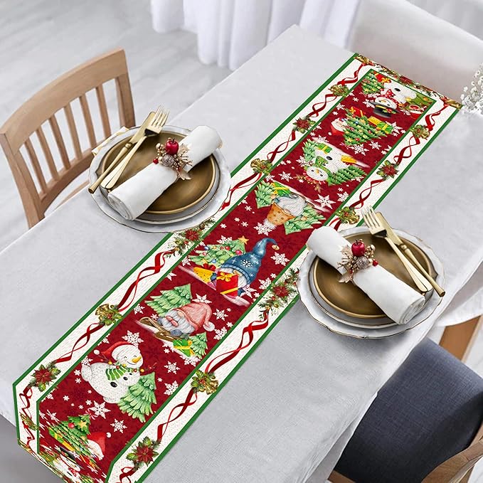 Christmas Table Runner 108 Inches Long Snowflake Buffalo Plaid Table Runner Christmas Theme Holiday Xmax Snowman Gnome Christmas Table Runner for Kitchen Dining Table Home Party Decorations