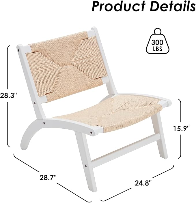Modern Boho Accent Chairs for Living Room,Mid Century Accent Chair,Side Chair Indoor Scandinavian Cognac Natural Wood Beech Braided Jute Woven Weave Paper Rope Seat