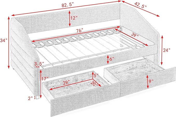About This Eucalyptus Wood+plywood+mdf+foam Stylish Design: This daybed with handy pull-out drawers is designed with a clean silhouette and a...
