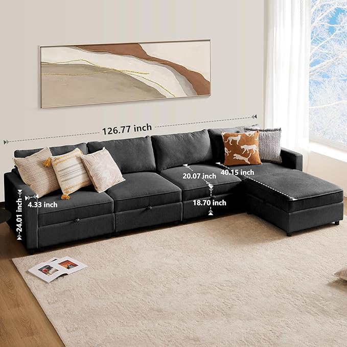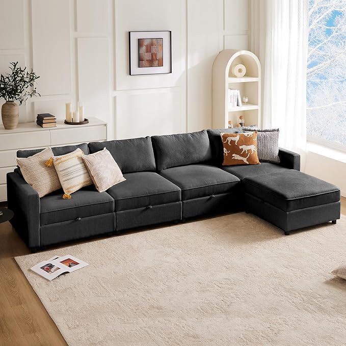 Sweetcrispy Convertible Sectional Sofa Couch, 5 Seat Sofa Set with Storage for Living Room, L-Shaped Modern Modular Sofa Sleeper with Ottoman, Comfy Sofa Couch with Extra Deep Seats, Grey