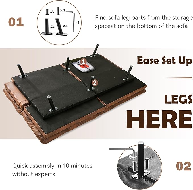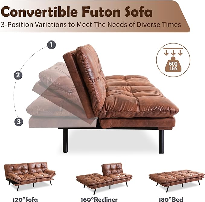 Futon Sofa Bed, Memory Foam Futon Sleeper Sofa Loveseat Convertible Couch Bed for Small Compact Living Spaces,Apartment,Brown Leather
