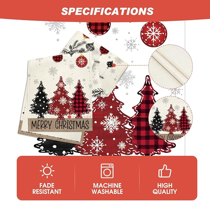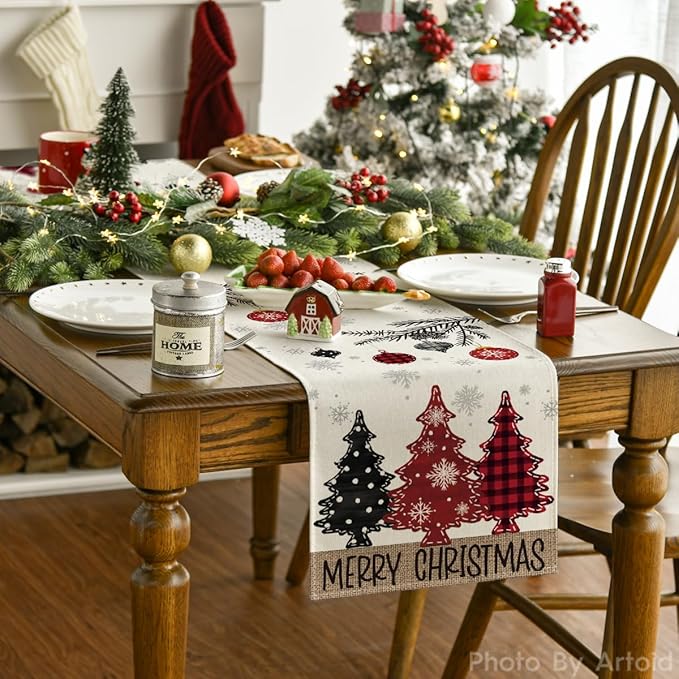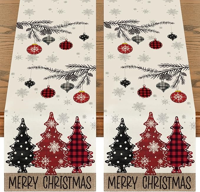Artoid Mode Red Pine Trees 2PCS Merry Christmas Table Runner, Seasonal Winter Holiday Kitchen Dining Table Decoration for Home Party Decor 13x72 Inch