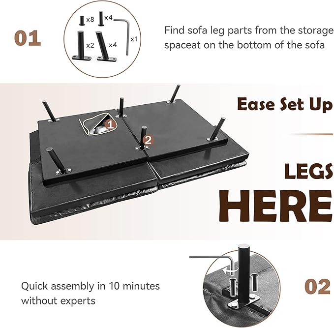 Futon Sofa Bed, Memory Foam Futon Sleeper Sofa Loveseat Convertible Couch Bed for Small Compact Living Spaces,Apartment,Black Leather